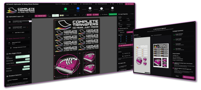 Choose your transfer and the appropriate size and upload your artwork-ready design.